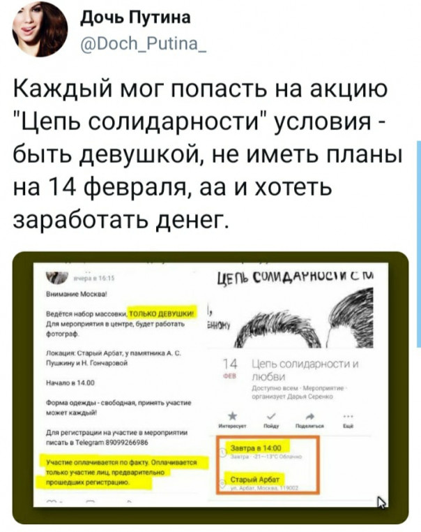 И напоследок – вернёмся к началу текста, к живым цепям. Как ещё одно подтверждение, что главный упор навальнистами был сделан на замыливании их прогрессирующей количественной деградации, они таки построили и цепь! Ну как, «построили» – наняли…
