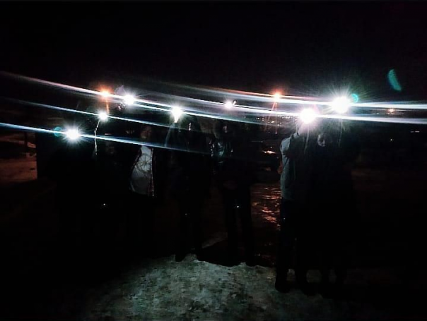 Есть много способов конвертировать малочисленность участников акции в визуальный эффект. Можно встать цепью – и жалкие 300-400 человек, которые бы поместились на школьном дворике, превращаются во внушительный километр, уходящий почти за горизонт. Можно накрыться большим флагом – и тут уж вовсе магия: сто человек могут держать флаг, который будет виден чуть ли не из стратосферы. Ну, а можно сделать так, чтобы на тёмном-тёмном фоне было видно только вас, и никого кроме вас – и кажется, что это идеально! Но…