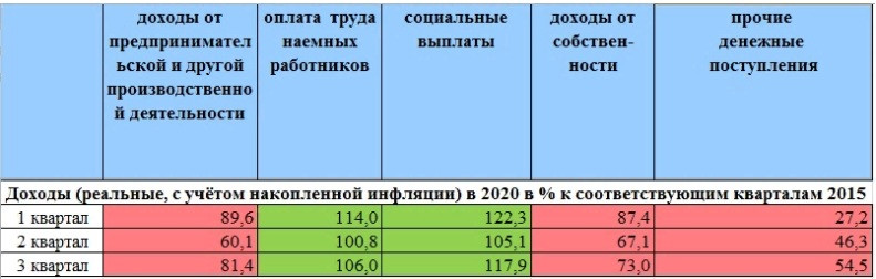 Реальные доходы населения в целом за 5 лет снизились из-за резкого снижения реальных доходов предпринимателей и рантье. А в таких видах доходов, как оплата труда наемных работников и пенсии, снижения за 5 лет не было вовсе. Разумеется, в среднем, разумеется, есть конкретные предприниматели у кого доход вырос и конкретные наемные работники у кого зарплата снизилась. Речь о многомиллионных категориях граждан, а не о вашей знакомой N, "у которой чего-то там и поэтому Росстат врёт" Но, повторюсь, эту тему мы уже подробно обсуждали и потому вернёмся к самой мякотке сегодняшней речи Коломейцева: