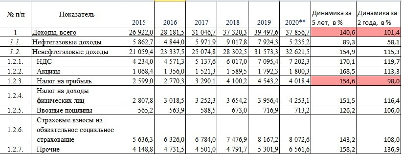 Из таблицы по исполнению бюджетов, которую вы видели выше, явственно следует, что ни о каком "галопировании корпоративных прибылей за последние 2 года" и речи быть не может. От слова совсем. Динамика сбора налога на прибыль по итогам 2 лет отрицательна! Хуже- только нефтегазовые доходы (по понятным причинам).