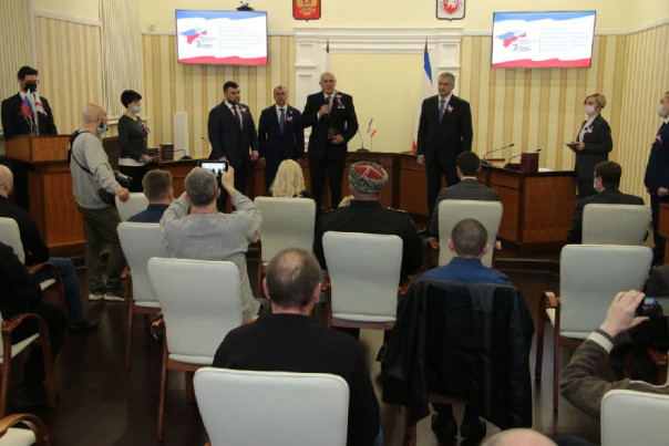 Уточняется, что высокие награды вручали Глава Республики Крым Сергей Аксенов, Глава ДНР Денис Пушилин, Председатель Государственного Совета Республики Крым Владимир Константинов. Вместе с тем на награждении присутствовали член Совета Федерации от Республики Крым Ольга Ковитиди, депутат Государственной Думы Андрей Козенко и другие.