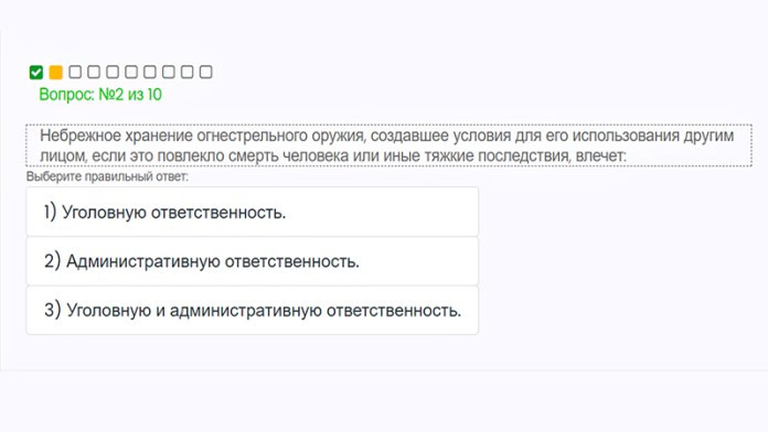 Так, к одному из экзаменационных заданий «Какова предельная дальность полёта пуль из огнестрельного гладкоствольного длинноствольного оружия 12 калибра?» предлагаются три варианта ответа: