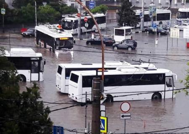 Между крымской столицей и Бахчисараем дожди размыли грунт под железнодорожными путями, из-за чего было приостановлено движение поездов из Москвы и Санкт-Петербурга. Вода залила крупнейшие симферопольские торговые центры «Меганом» и «Ашан».