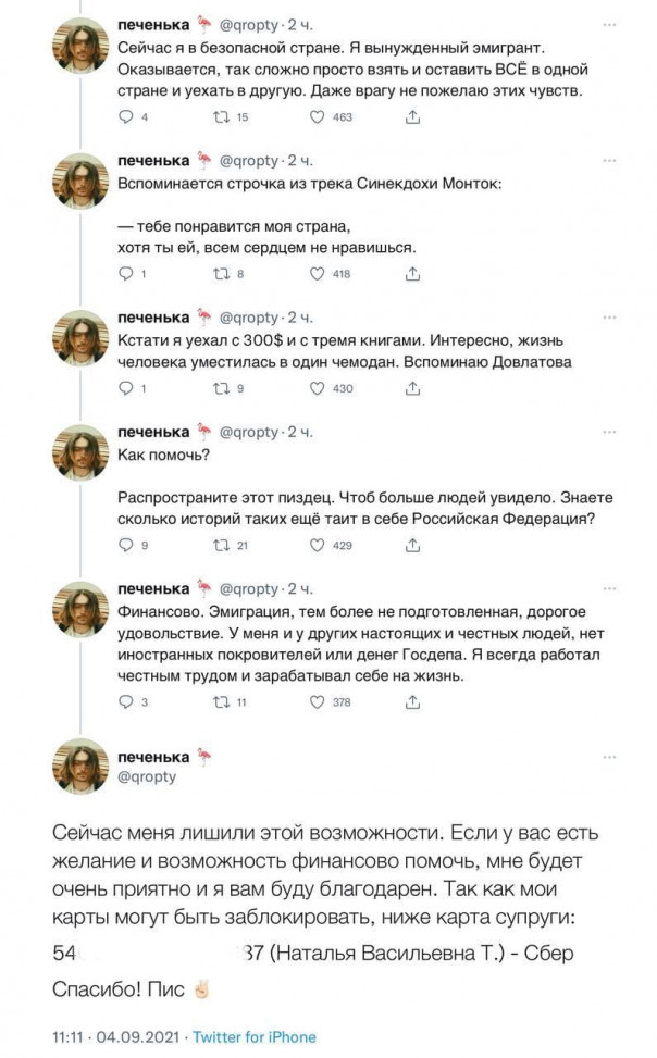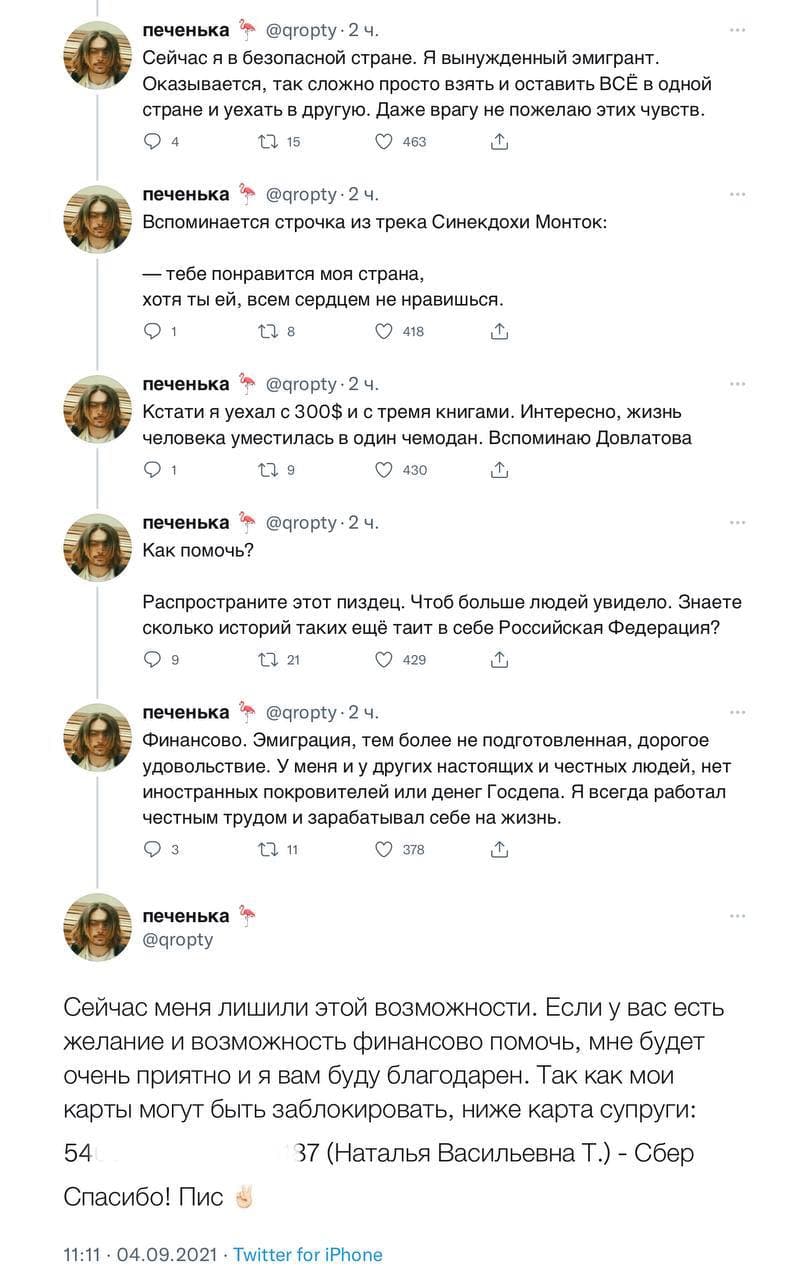В родной Таджикистан вернуться не могу, потому что я успел и там нагадить. Теперь я вынужденный эмигрант. Скиньте, пожалуйста, бабосиков. Умоляю вас!