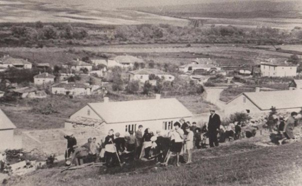 Село Фронтовое. Улица 345-й Дивизии. С террасы нашего сада открывается дивный вид: пологий холм и сбегающая вниз гряда сосен. Особенно хороши их подвижные кроны в лучах восходящего солнца. Сквозится свет, проникая через тугой изумруд сомкнувшихся веток. Шумят сосны, покрывая спасительной тенью каменистое ложе – последний приют для полусотни русских солдат, в одну ночь ставших землёй, небом, одним из многих памятников нашей великой победы.