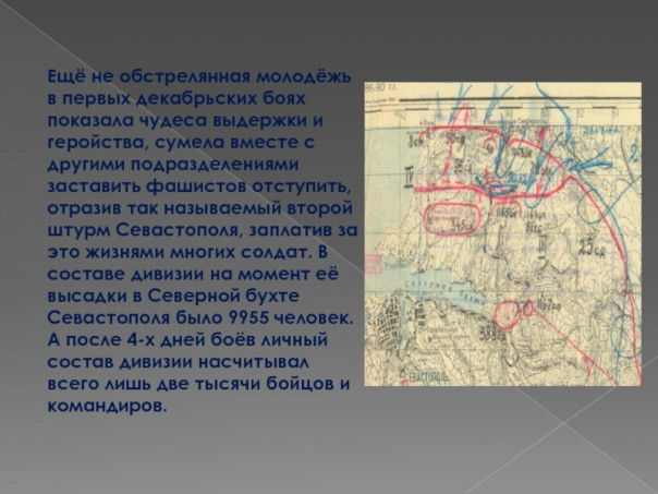 «Немцы рвались к Севастополю. Главный удар они наносили на Мекензиевых горах. В обороне Севастополя это место стало как бы пробным камнем, на котором проверялась прочность частей и соединений.