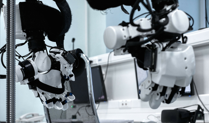 В 2019 году в ЦПК прошли успешные эксперименты по отработке взаимодействий космонавта с антропоморфным роботом. Он управляется в телеоператорном режиме, что позволяет ему в точности копировать движения и действия облаченного в специальный костюм оператора. При этом человек видит передаваемое камерами робота изображение через очки виртуальной реальности, а система создает эффект его погружения в те же физические обстоятельства, в которых находится робот. Работа в этом направлении продолжается. «Сейчас, например, мы ставим на нашем устройстве систему обратной связи. Если робот рукой упрется в стену — оператор это почувствует», — делится Курицын.
