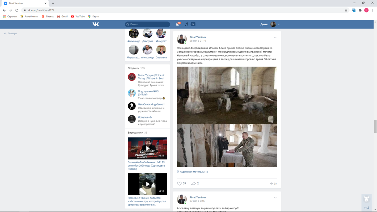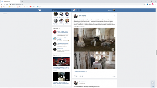 Как ни странно, но многие хотят хайпануть на острых и щепетильных вопросах, например, житель Челябинска псевдоимам Яминев Ринат решил пропиариться на конфликте в Нагорном Карабахе.