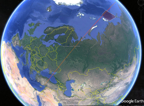 Траектория орбиты спутника «Космос-1408» и районы, объявленные закрытыми в выпущенном российской стороной навигационном предупрежденим NOTAM на период с 15 по 17 ноября 2021 года (с) Jonathan McDowell @planet4589