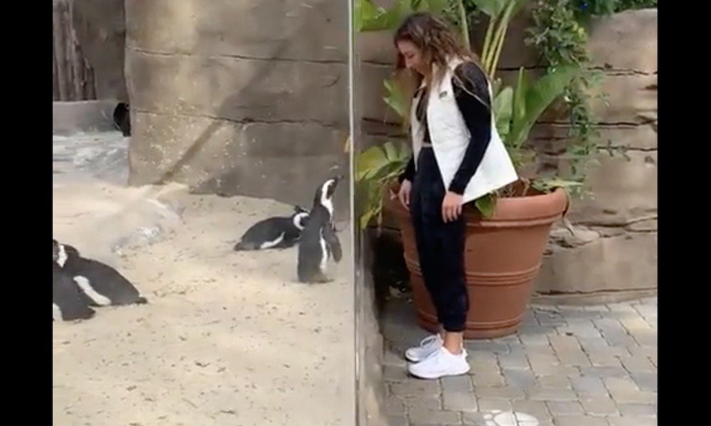 Одетая как пингвин девушка завела себе нового друга в зоопарке