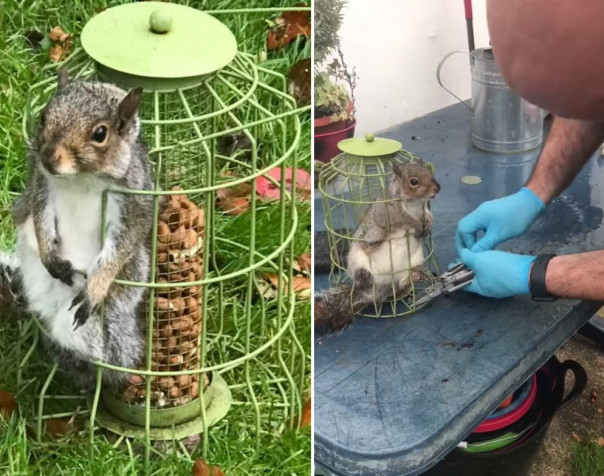 Оказалось, что и эти разработки не защищают еду от хвостатых воришек: один из жителей Уэльса обратился в местную природоохранную организацию с просьбой освободить белку, застрявшую в клетке. Маленький грызун пробрался внутрь и набил брюхо семечками и орешками, однако округлившиеся формы уже не позволили ему покинуть кормушку тем же путем, каким он туда проник.