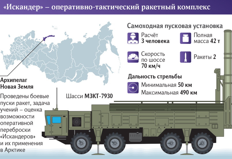 Минобороны России провело экспериментальные учения за Полярным кругом. Оперативно-тактические ракетные комплексы «Искандер-М» были подняты по тревоге и транспортными самолетами переброшены на Новую Землю. После чего их расчеты провели полный цикл учебно-боевых тренировок.