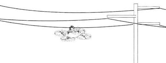 Предполагается, что такой коптер будет работать следующим образом: дистанционный оператор дрона наводит его "клещи" на линию электропередачи и даёт команду на их замыкание. Затем беспилотник заряжается в перевернутом положении, при этом у него сохраняется возможность вести разведку, поворачивая установленную на нём камеру в нужную сторону.