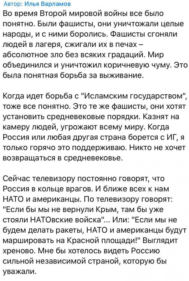 В связи с чем советую пересмотреть. Если не самому Варламову, то хотя бы тем, кто сейчас одобрительно кивает у него в комментариях. Источник