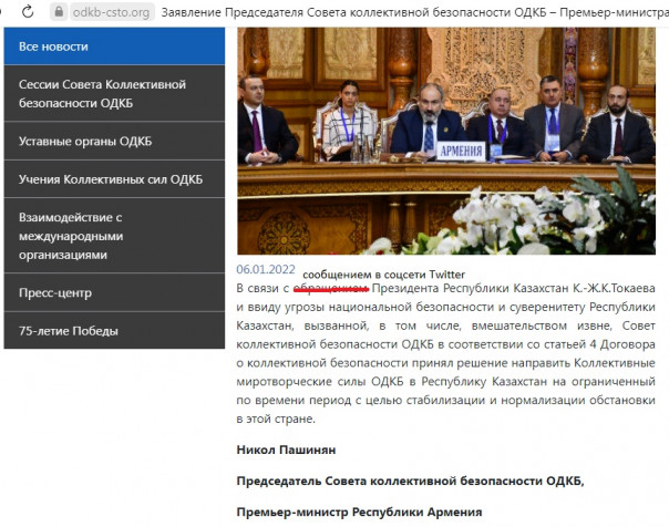 В начале заявление лидера левых сил о нормативно-правовой основе решения о вводе миротворческого контингента показалось мне несколько сомнительным. Я решил перепроверить информацию на официальном сайте ОДКБ. И был вынужден признать правоту оппозиционера: