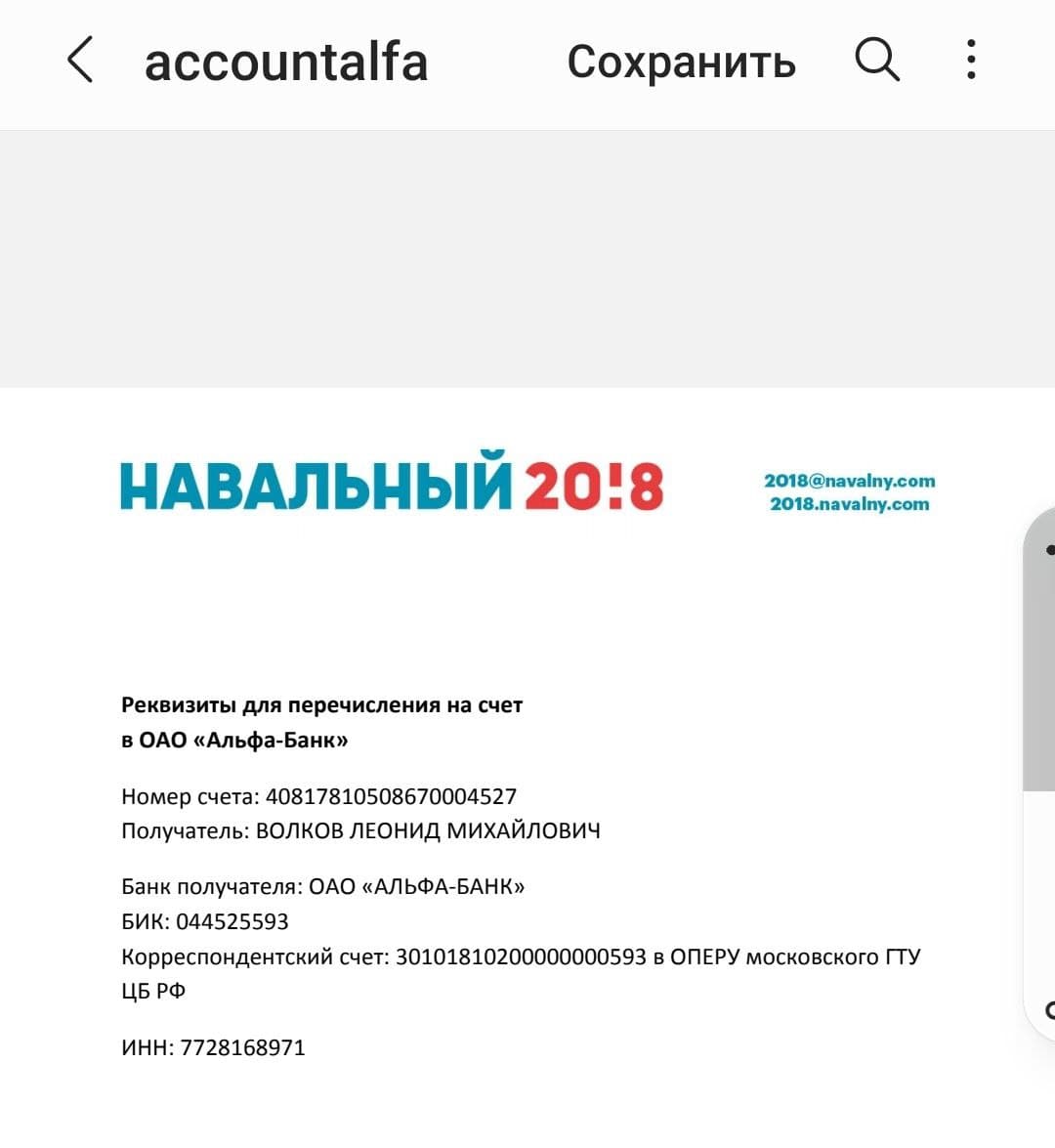 Перечислялись эти деньги с того самого счета в "Альфа-банке", на который и собирались донаты на выборы Навального (скрин номер 2).