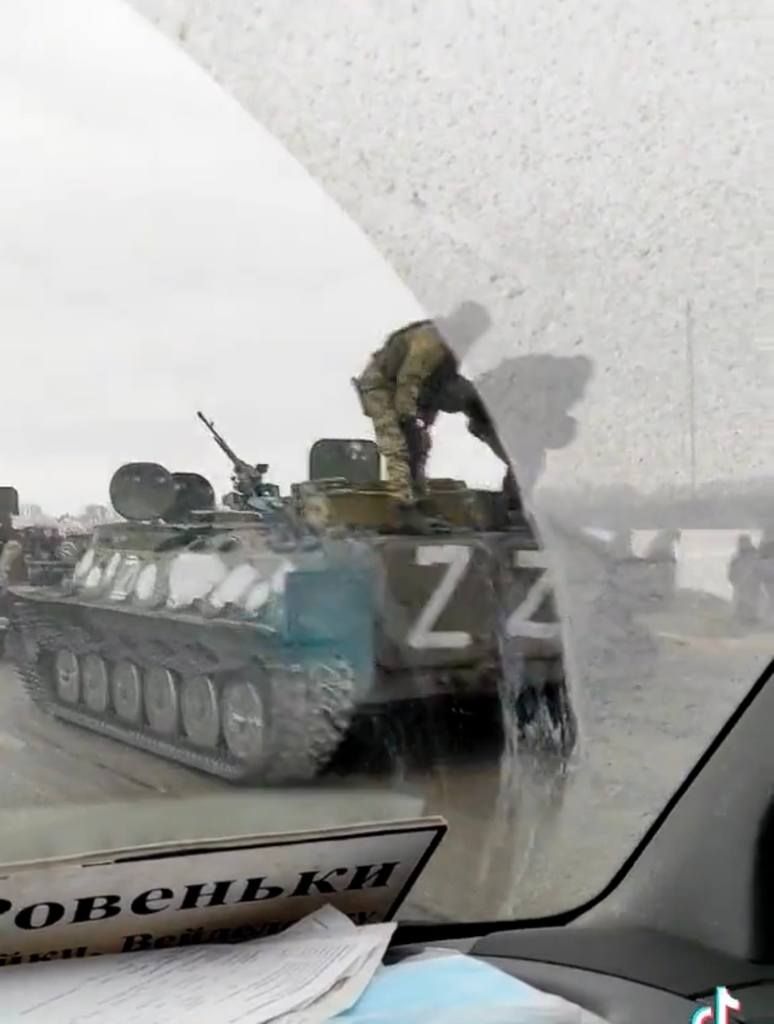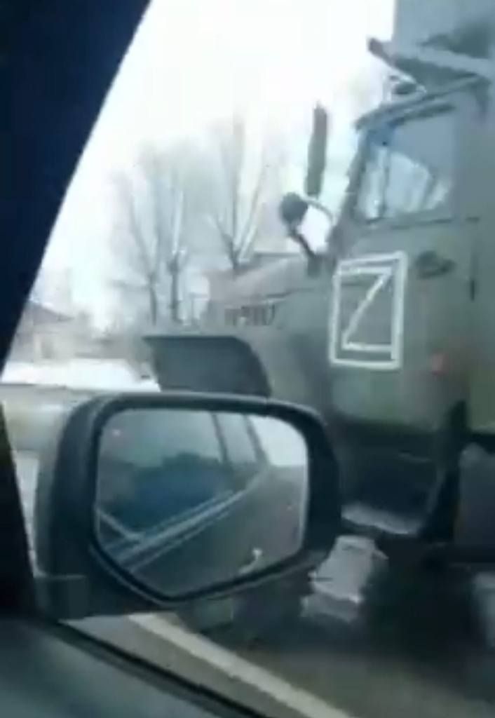 На всей военной технике, пребывающей к границе с Украиной, закрашены обозначения для мирного времени и нанесены тактические знаки "Z" (применяется при военных действиях)