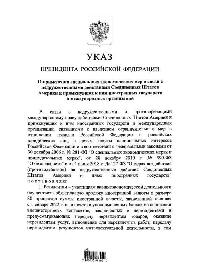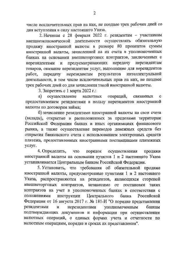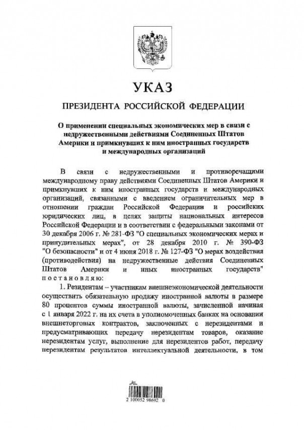 Данным указом в том числе запрещается со 2 марта вывоз из России иностранной валюты в сумме, превышающей десять тысяч долларов.