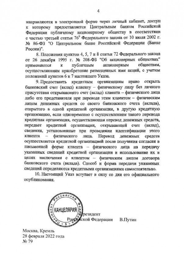 Президент России Владимир Путин подписал указ о дополнительных временных мерах по обеспечению финансовой стабильности в стране.