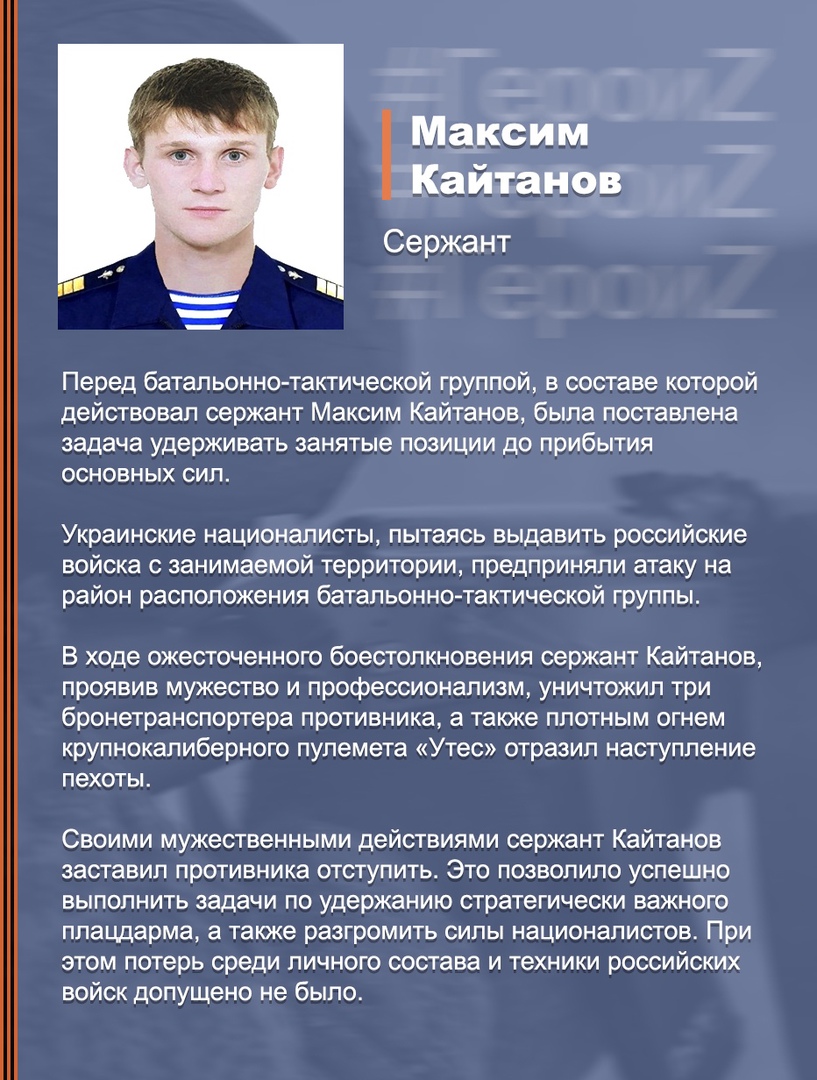 Ефрейтор Дмитрий Каурдаков проявил мужество и героизм на поле боя. Несмотря на артиллерийский огонь и нападение противника, он спас раненных сослуживцев и помог отбиться от противника
