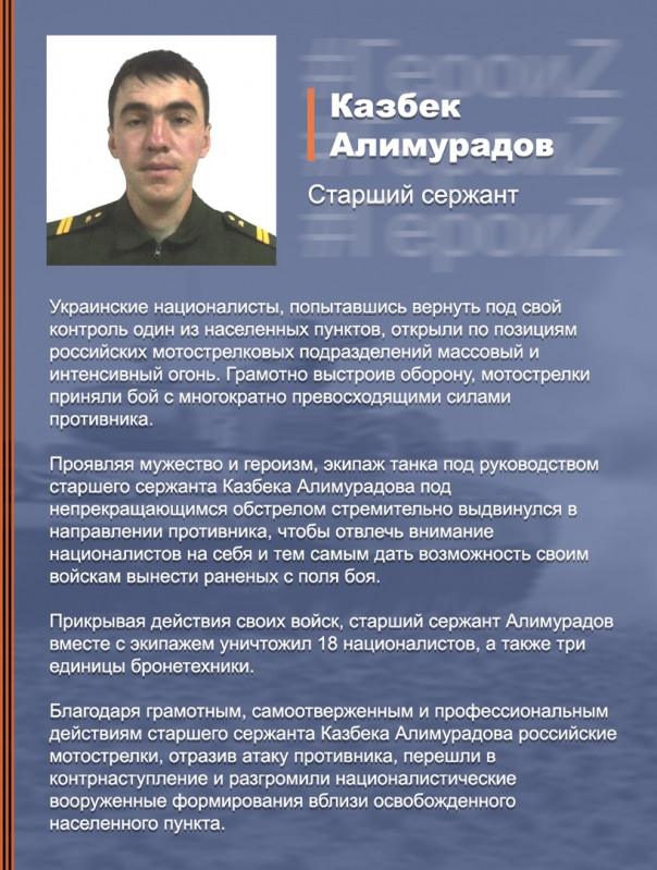 Сержант Давид Асаев сохранил жизнь своему взводу и в одиночку отразил атаку противника в ходе боя в одном из населенных пунктов. За смелость и профессионализм герой спецоперации будет награжден!
