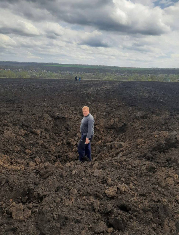 Фото сегодняшнего обстрела в Белгородской области. Воронка от снаряда, прилетевшего под село Отрадное