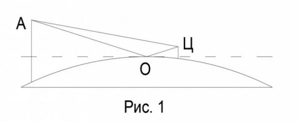На рисунке море изображено в виде дуги окружности, а линия радиогоризонта – в виде штриховой прямой. За точку, от которой отсчитываются все расстояния, принята точка зеркального переотражения радиолуча О.