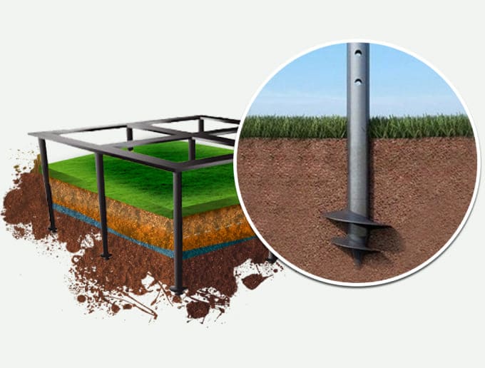 Главное достоинство свайно-винтовых конструкций – возможность установки в любой грунт (даже в воду). Благодаря заглублению столбов в почву ниже уровня ее промерзания стальное основание не подвержено силам морозного пучения. А длина стволов с достижением плотного пласта гарантирует статичность даже при подвижках грунта. По скорости возведения (1-5 дней) такая методика возведения оснований является самой эффективной в мире. Препятствием не являются низкие температуры (работы ведутся в условиях вечной мерзлоты). Стоимость фундамента на 30-40% ниже ж/б аналогов, а долговечность достигает 100 лет и более при строительстве из заводских столбов.