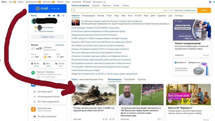 1. Общий вид главной страницы российского портала Мэйл.ру с пасквильной статейкой про радостную встречу нацистов в СССР, которая, чисто случайно, конечно, находится на самом видном месте.