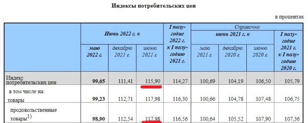 В июне, "когда Россию уже накрыло санкциями", годовая инфляция для потребителей составила 16%, по продуктам питания в среднем- 18%. Но согласно Рыбину она составила 100%. Ну раз "мы обеднели за год на 50% минимум". У меня только один вопрос - какова структура питания Рыбина, что у него даже в среднем (!) по всем продуктам цена удвоилась?
