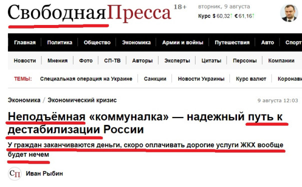 Странно....А мне платёжка за ЖКХ в рублях приходит....В них и оплачиваю. А причём тут курс? И, кстати, при слабом рубле стоимость ЖКХ выраженная в инвалюте должна же выглядеть более низкой, доступной? Похоже, кликуша просто хотел запихнуть весь условный негатив в одну фразу, вне всякой логической связи и, как следствие, угодил в логическую же ловушку. У "правдоматочников" это часто случается...