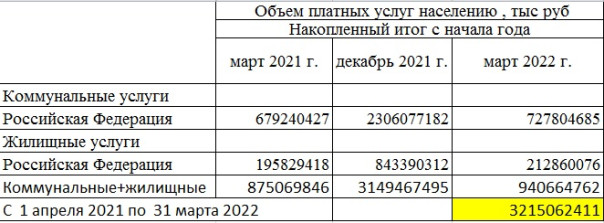 Ну а далее мне пришлось порыскать по сусекам Росстата (куда, наверное, даже редкий их сотрудник заходит). Ведь нужно было найти: а каковы выплаты граждан за жилищные и коммунальные услуги между концом 1 кв 2021-го и концом 1 квартала 2022-го.