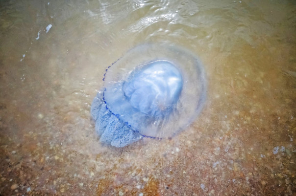 Отдыхающий запил желеобразную морскую обитательницу пивом