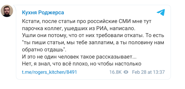 Статья вроде бы про Монтян, но гораздо интереснее завуалированная тема про RT! Дискредитируется гос. канал с явно прорусской патриотической позицией и его главный редактор Маргарита Симоньян. Сюда же "прилеплен" Роджерс с его "слухами" про РИА. Видимо, РИА Новости! Он очень старательно "набрасывал" на военкоров, многих из которых потом Путин награждал и просто хвалил. Да и Пригожин высказался по этой теме очень однозначно: "руки прочь от военкоров"! Роджерс, конечно, няшка, почти как котики, но к нему с каждым разом всё больше вполне серьёзных вопросов. Уж если чью деятельность расследовать, его или военкоров, то я бы начал с Роджерса.