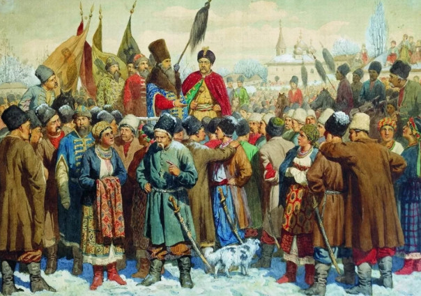 После чего участникам Рады и был предложен выбор из имевшихся на тот момент вариантов – обратно к королю польскому; к хану татарскому; к султану турецкому или же к царю русскому. Царь и был выбран на Переяславской Раде в качестве нового сюзерена малороссийских земель.