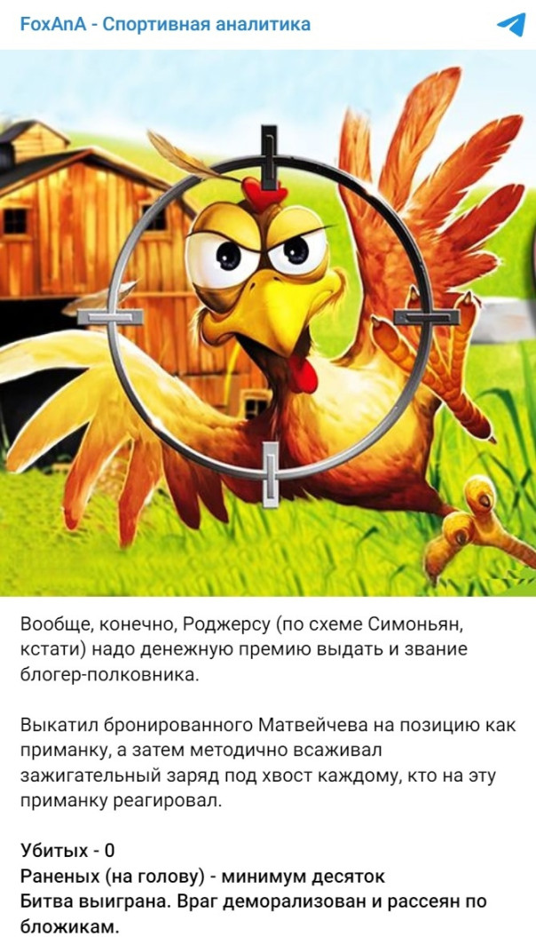 На этом боевой ёршик зачехляю, однако на всякий случай далеко убирать не буду. И если военкурятник продолжит, то у медведя возникнет закономерный вопрос: вы охотники или пидорасы? Впрочем, вопрос давно риторический, а ответ известен…