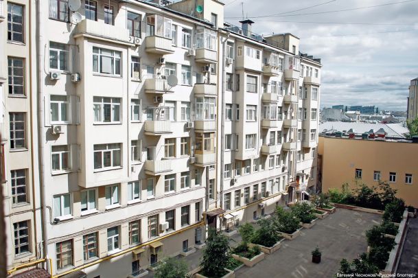 Вторая квартира Владимира Епифанцева (по её адресу он получал корреспонденцию) располагается в авангардном доме, спрятанном во дворах Тверской улицы за величественной сталинской застройкой. Всего в паре минут ходьбы — Кремль. Здание было построено под нужды кооператива "Крестьянская газета" и задумывалось как жильё нового типа, коммуна. Его архитектура подчинена строгим геометрическим формам, свойственным конструктивизму: квадратные эркеры, окна и балконы.