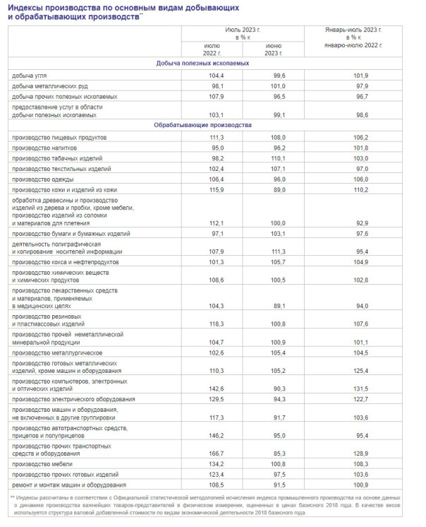 О ПРОМЫШЛЕННОМ ПРОИЗВОДСТВЕ В ЯНВАРЕ-ИЮЛЕ 2023 ГОДА