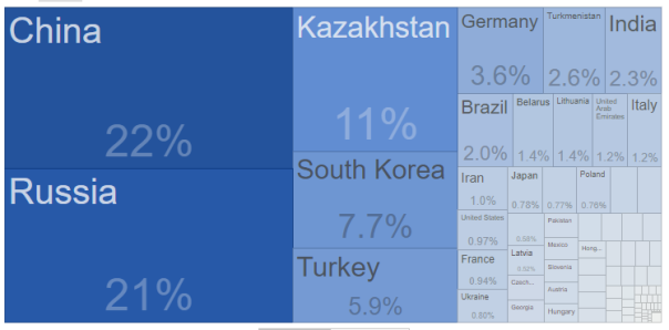 Ещё несколько слов про Узбекистан. Это мощная региональная страна и по ресурсам и по человеческому капиталу, вполне сопоставимая с «У» по своему потенциалу. До недавнего времени Ташкент держался относительно обособленно от России, но с приходом Мишустина, отношения рванули с небывалой силой. Рост товарного оборота в среднем за последние годы составляет 20% в год. Спустя всего три года, Россия стала торговым партнёром номер 1 для Узбекистана, обогнав Китай.