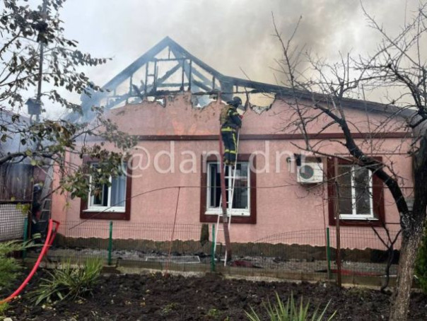 В результате обстрела Калининского района произошло прямое попадание в кровлю здания автотранспортного предприятия по ул. Сеченова. Кроме того, загорелся частный дом по ул. Красина. В результате обстрела, по предварительным данным, ранения получила женщина.