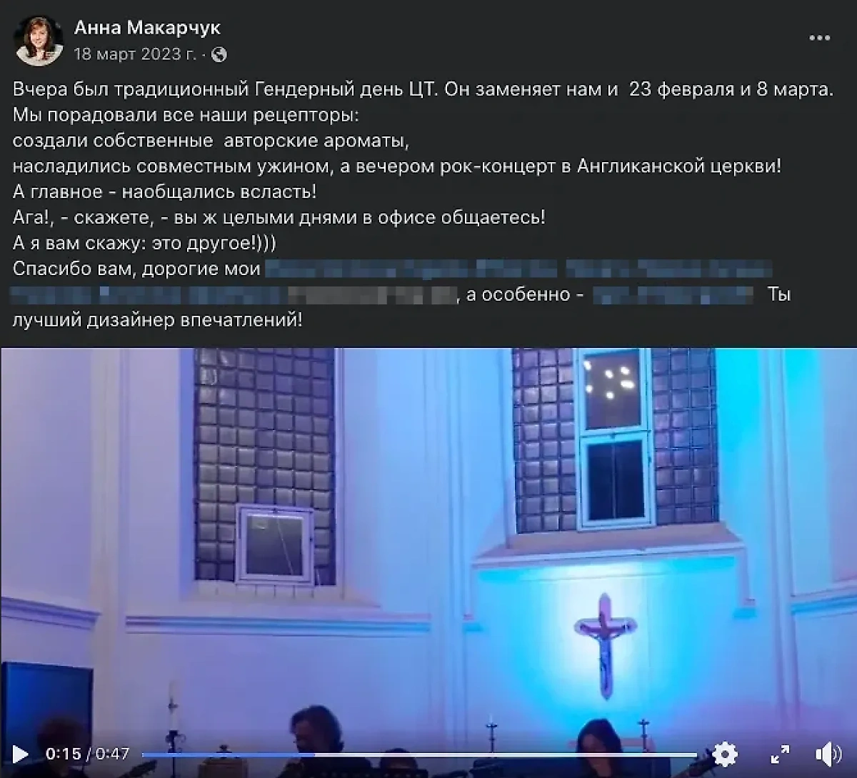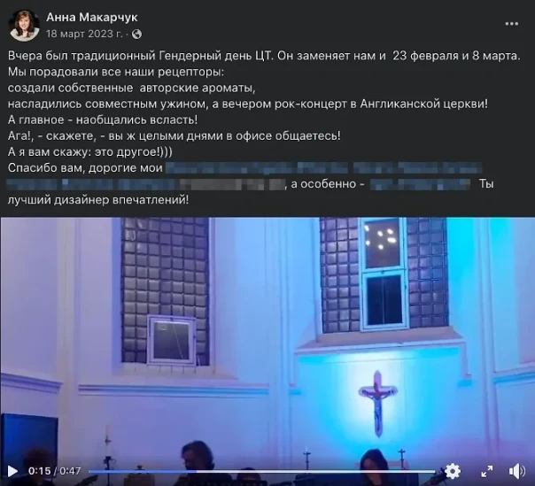 К слову, скоро возглавляемый Анной Макарчук Центр толерантности отметит странный внутренний праздник — Гендерный день. Он заменяет сотрудникам 23 Февраля и 8 Марта. Прошлый Гендерный день отметили рок-концертом в одной из столичных англиканских церквей.