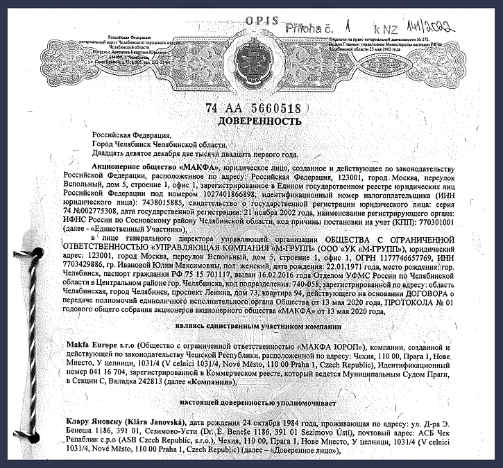 В 2022 году "Макфа" в Чехии сменила генерального директора. Вместо школьного друга экс-губернатора Михаила Юревича Дмитрия Мешкова интересы компании стала представлять чешка Клара Яновская.