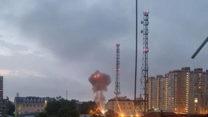 Пожар произошел на территории Ильского нефтеперерабатывающего завода в Краснодарском крае после падения беспилотника ВСУ.