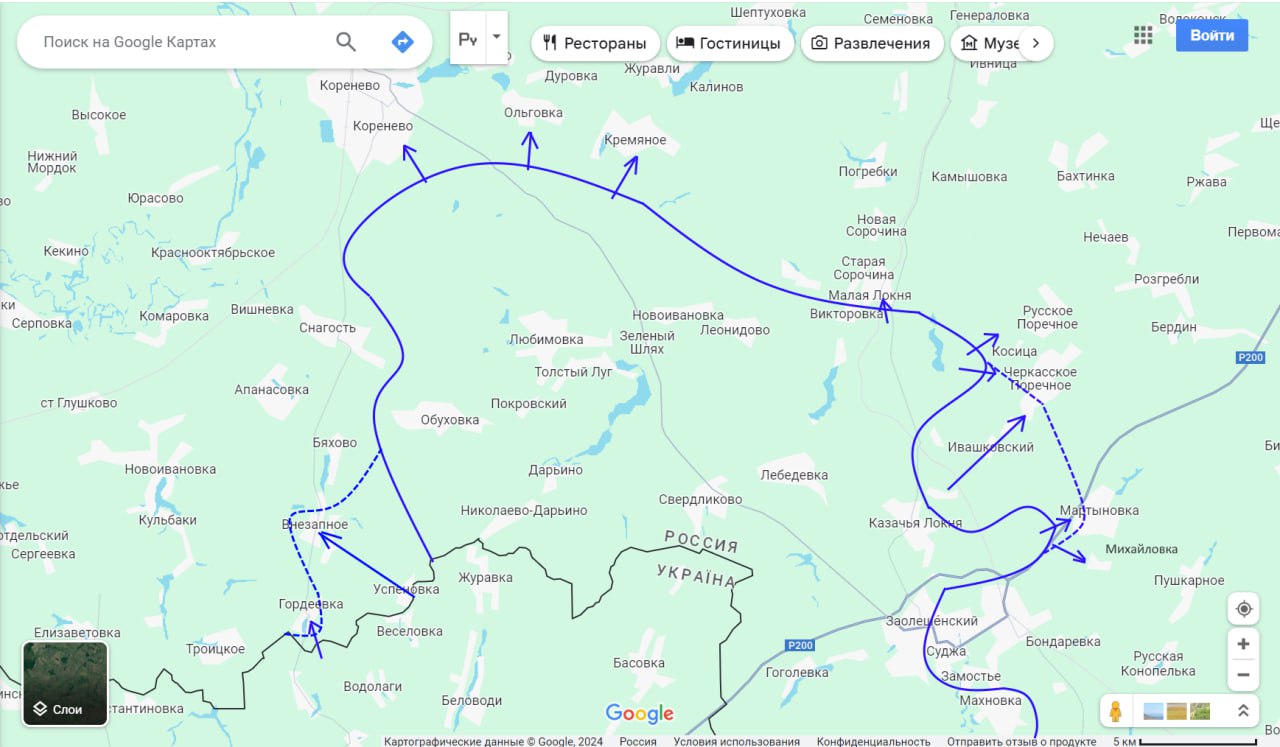 К сожалению к утру подтвердилась информация, что противник сумел зайти в южную часть Мартыновки и там закрепиться. Более того, он использовал этот успех, чтобы начать бои за соседнее село Михайловка. Таким образом, северная клешня обхода Суджи продолжает формироваться.