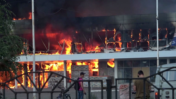 В результате обстрела Петровского района Донецка сгорело здание торгового центра «Галактика», также повреждения получило здание Центральной городской больницы №14. Два человека погибли, ранения получили 11 человек. Среди них женщины: 1972, 1970, 1982, 1973 и 1982 года рождения, мужчины: 1982, 1985, 1986, 1983 и 1973 года рождения и парень-подросток 2008 года рождения.