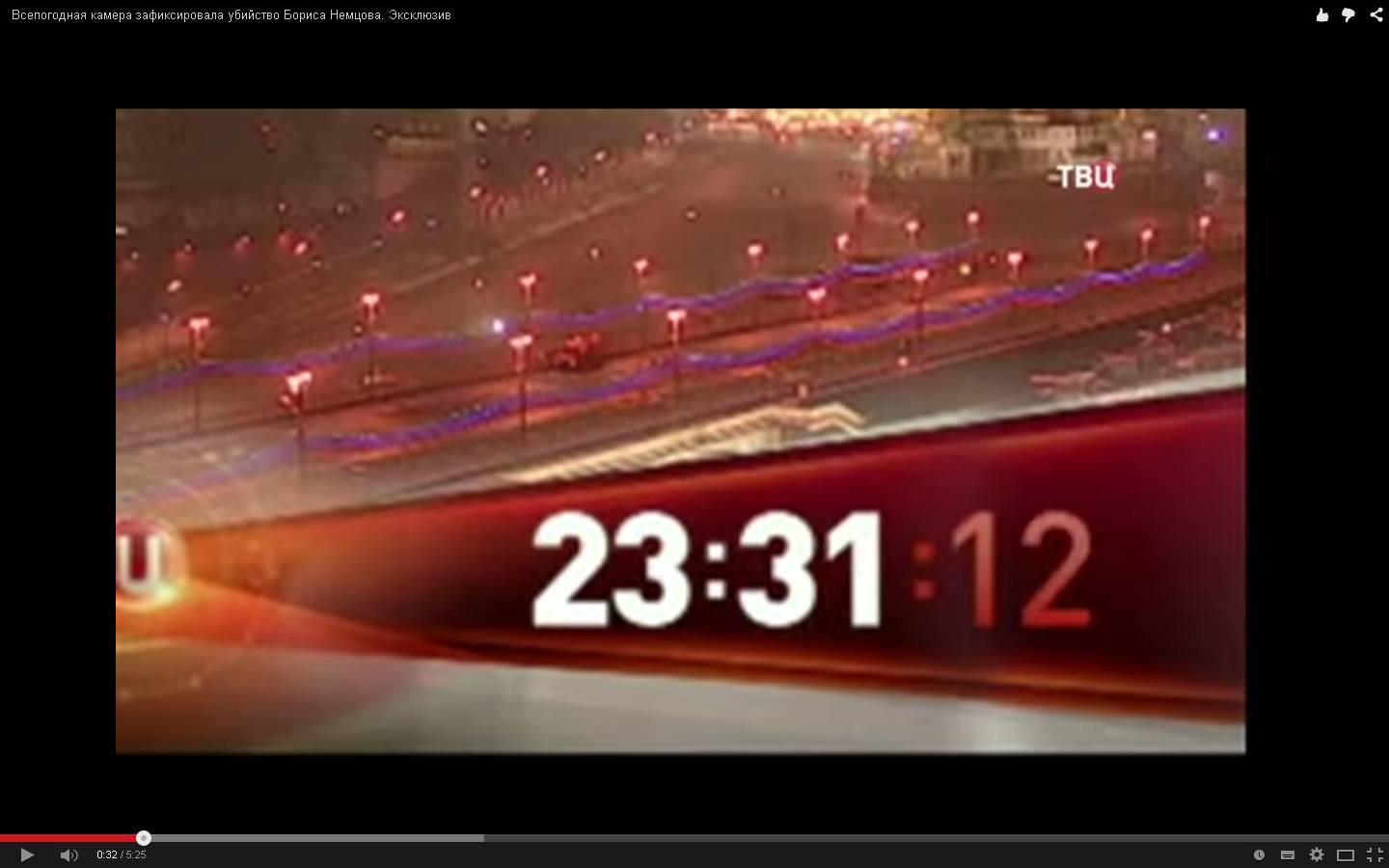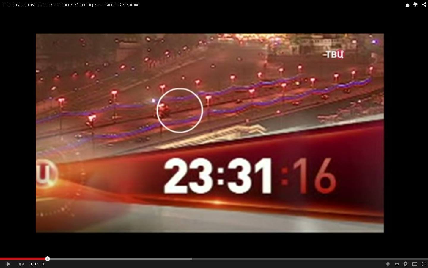 В соответствии с видеозаписью камеры наблюдения в 23:31:12 Немцов еще жив и идет по мосту со спутницей.