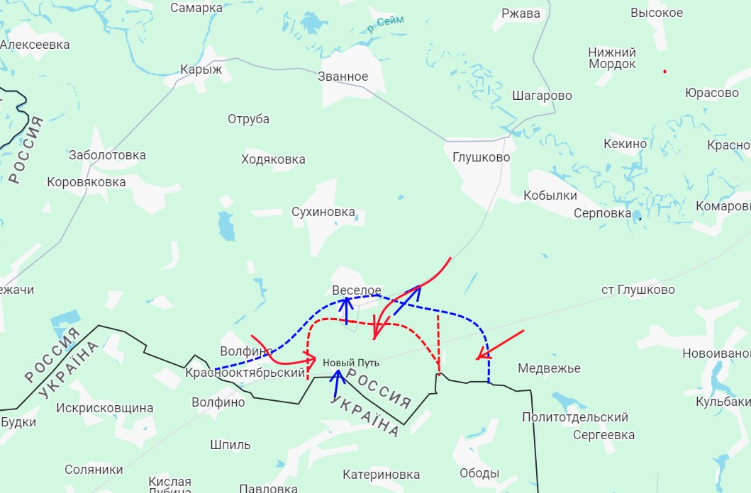 Весёлое. Одновременно с этим части 106-ой дивизии ВДВ атаковали противника в районе его мини-плацдарма южнее Весёлого. Пока точных данных по итогу боев у меня нет, но противника потеснили. Надеюсь уже скоро противник полностью будет отброшен на территорию Сумской области.