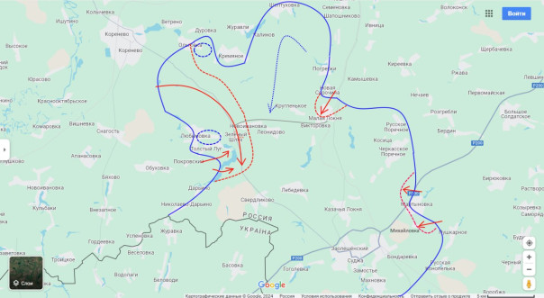 Суджа. Здесь наши части (Ахмат и 810-я бригада морпехов) атаковали противника в районе Михайловки и Мартыновки. В течении дня они чистили посадки вокруг этих сел (в Мартыновке противника нет) и готовились к штурму Мартыновки. К вечеру бои за село начались.