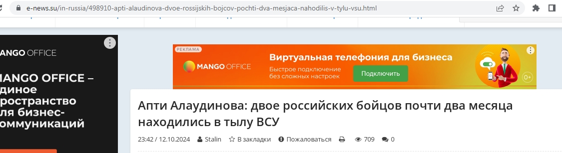 Апти Алаудинова: двое российских бойцов почти два месяца находились в тылу ВСУ