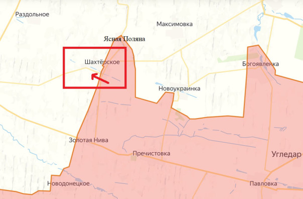 В районе Ясной Поляны, к западу от Новоукраинки, ВС РФ завершают зачистку н.п. Шахтёрское.